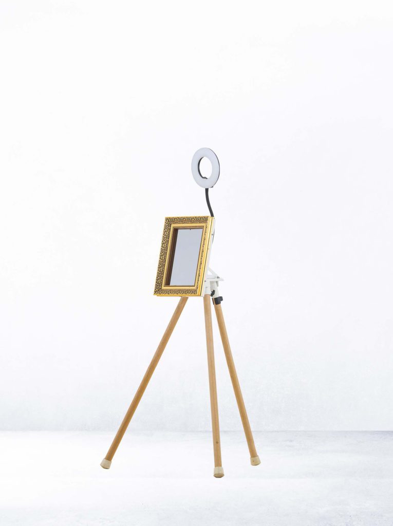 Das Foto wird hier nicht mit einer integrierten Spiegelreflex Kamera, sondern mit einem iPad aufgenommen. Das erlaubt eine viel schlankere Bauform als bei allen anderen Varianten. Damit kann die iPadBoox in Gestalt eines kleinen Spiegels mit einem edlen Goldrahmen auf einem stylischen Dreibein-Stativ stehen oder auch als Einbaulösung, etwa an Haltestellen, zum Einsatz kommen. Die iPad-BOOX funktioniert ausschließlich digital. Das System profiliert sich durch die perfekte Anbindung der kontaktlosen fotoBOOX. Weiters bietet die iPadBOOX eine vielfalt an Animationsmöglichkeiten.
